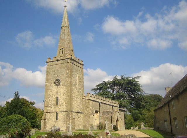 St. Faith's Church in Shellingford consists of a chancel 24 ft. by 14 ft. 3 in., nave 54 ft. by 19 ft. 4 in., west tower about 10 ft. square, south porch and north vestry. These measurements are all internal. The nave and chancel appear to have been built late in the 12th century, but both have been considerably altered, while preserving their original proportions. The west tower was added in the first half of the 13th century, and in the 14th century the chancel was largely rebuilt. About 1400 a chapel was apparently added on the north of the chancel, but this was subsequently destroyed at some uncertain date. The tower arch was rebuilt in the 15th century. In 1625 the church underwent an extensive restoration, much of the nave walls being rebuilt, the south porch added and a spire built. The building has been again restored in modern times, and in 1848 the spire was destroyed by lightning and rebuilt. The chancel has a 14th-century east window of three lights with net tracery in a pointed head. Towards the east end of the north wall is a moulded and pointed arch of about 1400; the soffit is ornamented with quatrefoils in circles, each with a grotesque face or flower in the centre. The arch is now blocked and filled with a late three-light window, partly restored. Further west is a 14th-century singlelight window. There are three similar windows in the south wall, the sill of the first being carried down to form a sedile; further east is a trefoil-headed piscina, recut. The priest's doorway, between the two western windows, is 12th-century work reset; it is of two orders, the outer ornamented with cheverons, and the jambs have each two banded shafts with moulded abaci. The late 12th-century chancel arch is of two plain round orders; the responds have each one semicircular and one detached shaft with foliated capitals, square abaci and circular bases. The flat tie-beam roof is probably of 17th-century date. The nave has in the north wall three windows, each of two lights, cusped, transomed and squareheaded; they probably date from 1625. Between the two western is the late 12th-century north door of two orders, the inner continuously moulded and the outer resting on side shafts with simple voluted foliage capitals; the arch is enriched with a series of plain beak heads. In the south wall is a 14thcentury window of three lights with net tracery in a pointed head. Further west are two early 16thcentury windows, each of four lights, with depressed heads and transoms. Between them is the good late 12th-century south doorway of two orders, the outer with a double cheveron and the inner with a roll moulding; the label has dog-tooth ornament with grotesque animal head-stops, and the jambs have each one detached and one engaged shaft, the former banded, and both with square moulded abaci, foliated capitals and bases with spur ornaments. The nave roof, probably of the 17th century, has moulded tie-beams with curved braces and moulded stone corbels. The walls are embattled, and high up on the south side is a shield inscribed 1625. The 13th-century west tower is three stages high and finished with an embattled parapet. The 15thcentury tower arch is four-centred with moulded imposts. In the west wall is a single lancet window. Above it, in the second stage, is a second lancet, and the bell-chamber has a very tall lancet window in the north and south walls. The tower is surmounted by an octagonal stone spire, with rolls at the angles and four spire lights near the base, each of two lights set in a stone frame. The south porch has a pointed outer archway and a two-light window in the west wall. Set in the gable is a modern stone inscribed 'Carol. rex 1625.' The panelled half doors to the entrance are of this date. On the north wall of the chancel is an elaborate marble monument to Mary wife of Robert Packer (d. 1719), and on the south wall is a tablet to Edward Neville (d. 1632), with the Neville arms with a rose on the saltire. To the north of the altar is a tablet to John Packer (d. 1682), with two shields, one Packer impaling Stephens, and the other Packer. On the floor, partly covered by the altar step, is a large slab with the indent of a canopied brass and a marginal inscription. On the north wall of the nave is a large 18th-century monument to Sir Edward Hannes, and south of the chancel arch is one to William Viscount Ashbrook (d. 1780). There is also a brass inscription to Mary Knappe (d. 1621). In the churchyard, south of the chancel, is a good altar tomb to Alicia wife of Richard Clayton, rector (d. 1643), with a shield of Clayton impaling a lion and a chief with three roundels therein. In the second window on the south of the nave the lower lights are filled with fragments of ancient glass, including the heads of four saints, the tops of four canopies, grisaille, &c. There are four bells: the treble is inscribed 'When I am tolled with speed prepare both young and old God's word to heare, Robert Tompson Churchwarden, Edward Neale of Burford made mee 1653'; the second is uninscribed; the third is by H. Bagley, 1738, with the names of the churchwardens; the tenor is inscribed in black letter 'Gloria in excelciuc (sic) deo W.K. 1586.' There is also a ting-tang, dated 1668. The plate includes a cup and cover paten (London, 1597) of silver gilt, with an incised pattern round the rim of the cup, a stand paten (London, 1624), inscribed 'P.P. 1641,' with a shield of Packer impaling Mills of Bitterne, a modern flagon and a chalice and paten given by E. M. Goodlake in 1850. The registers previous to 1812 are as follows: (i) baptisms 1579 to 1781, marriages 1582 to 1754, burials 1581 to 1781; (ii) mixed entries 1678 to 1782; (iii) marriages 1755 to 1812; (iv) baptisms and burials 1782 to 1812. Historical information about St. Faith's Church is provided by 'Parishes: Shellingford', in A History of the County of Berkshire: Volume 4, ed. William Page and P H Ditchfield (London, 1924), pp. 475-478. British 