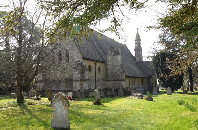 The 18th-century chapel of St John the Evangelist in Hailey, so called from its foundation, stood south of Hailey's main street. The building (Fig. 75), of stone rubble and slate, had a small chancel or apse, a nave, and a polygonal west tower surmounted by an open bellcote in the form of a cupola; it was repaired and enlarged about 1830 when an aisle or transept was added, the cost met by subscription and by the Incorporated Society. In the earlier 19th century the nave north wall had two pointed windows with intersecting tracery, flanking a blocked round-headed doorway; a west doorway with a fanlight led into the tower, which had a clock on its north side. Fittings included a surviving stone font with a gadrooned bowl on a baluster stem, later transferred to the new church, and a bell may have been given or recast in 1812. The alterations of 1830 reportedly increased accommodation by 180, though estimates of the chapel's capacity both before and after enlargement varied greatly and in 1866 only 208 sittings (183 of them unfree) were reported, excluding those in a gallery. The building was said then to be 'ugly, ill-pewed and very dilapidated'. An extension to the chapelyard was acquired in 1810 and consecrated in 1827. In 1866 it was decided to build a new church on a close to the south-east, given reportedly by the incumbent George Crabb Rolfe. The building-cost was met chiefly by the Diocesan Church Building Society and from subscriptions, to which some non-resident landowners refused to contribute. The architect was the incumbent's son Clapton Crabb Rolfe, whose plans, dubbed 'needlessly eccentric' by the diocesan architect, were modified at his insistence. Work began in 1868 and the church was consecrated in 1869. The old building was demolished except for a small part of the south and west walls, which, with surrounding gravestones, remained within the former churchyard in 1999. Responsibility for the site was transferred to the parish council in 1958.